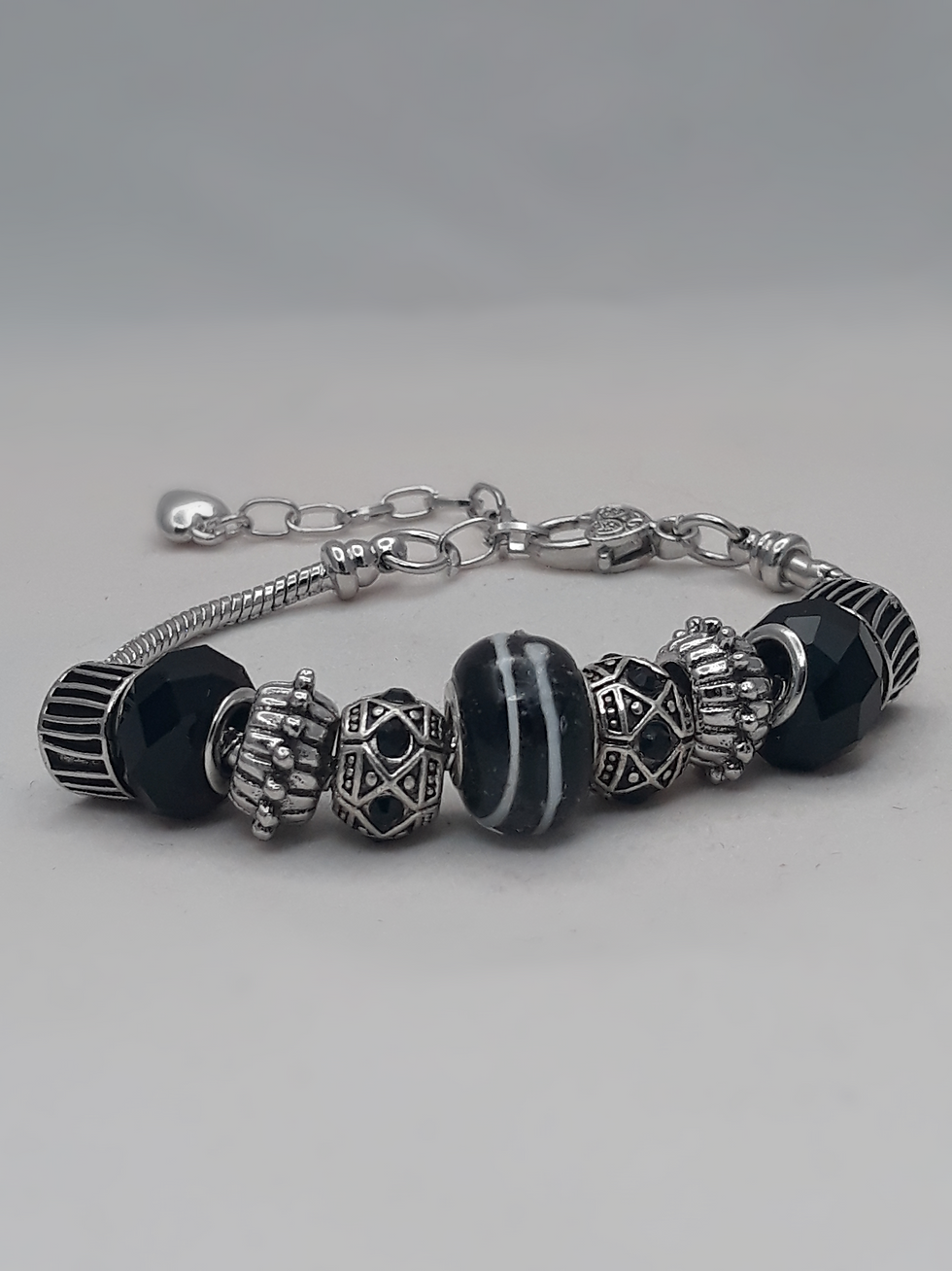 Glitter Snowman and Snowflake Christmas Charm Bangle Bracelet